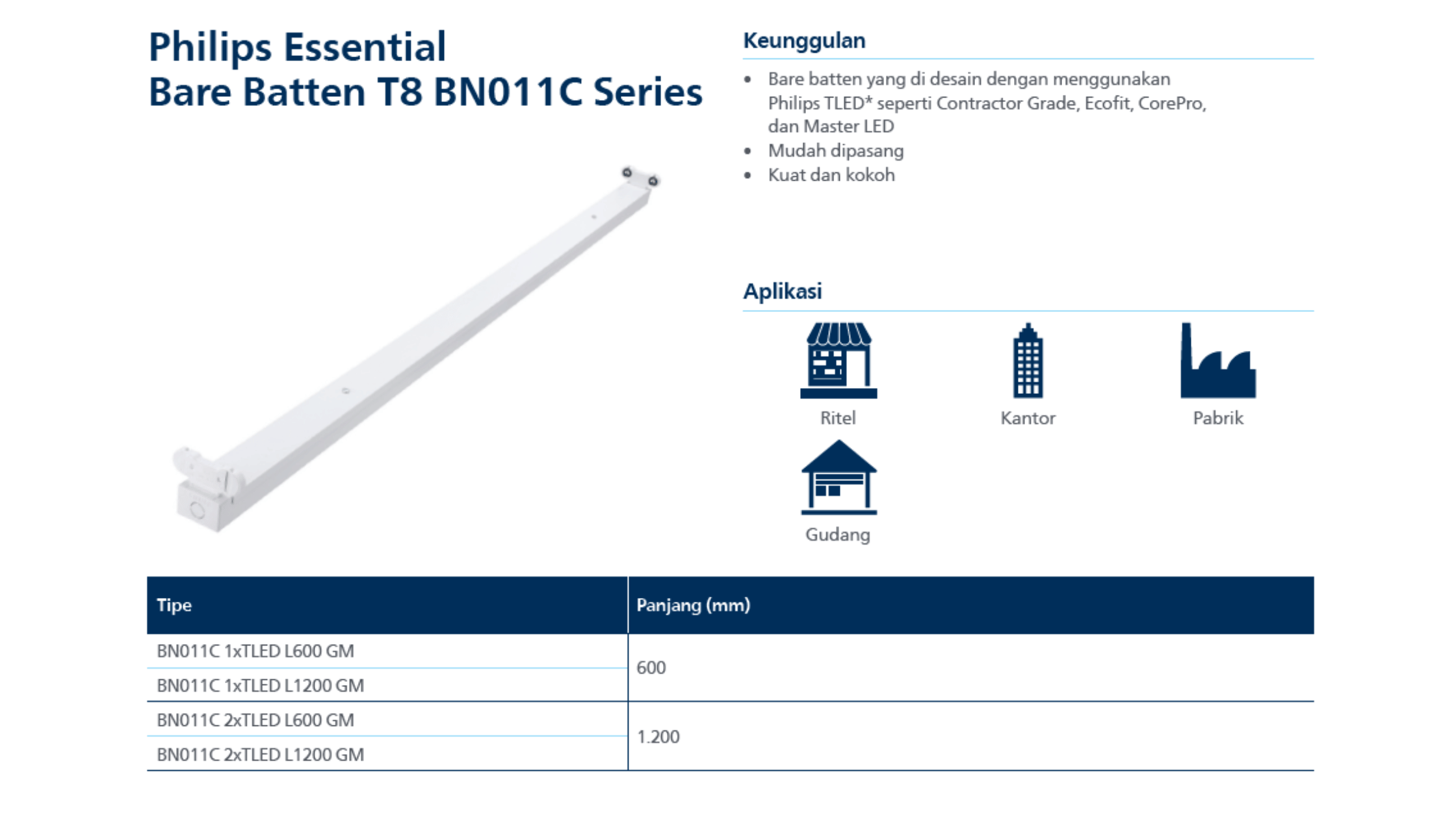 Tag: BELI BARE BATTEN PHILIPS BN011C 2xTLED L600 GM PHILIPS
